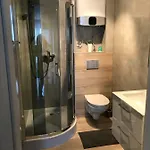 Az 1 hálószobás apartman fürdőszobája hajszárítóval és törölközőkkel felszerelt. Továbbá walk-in zuhanykabin és külön WC szintén elérhető.